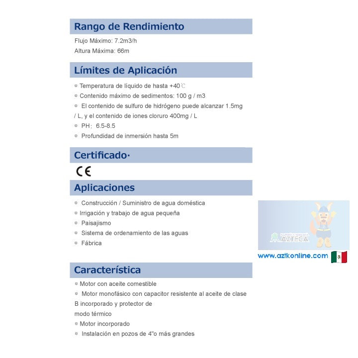 BOMBA SUMERGIBLE ADELINO 1HP 127V