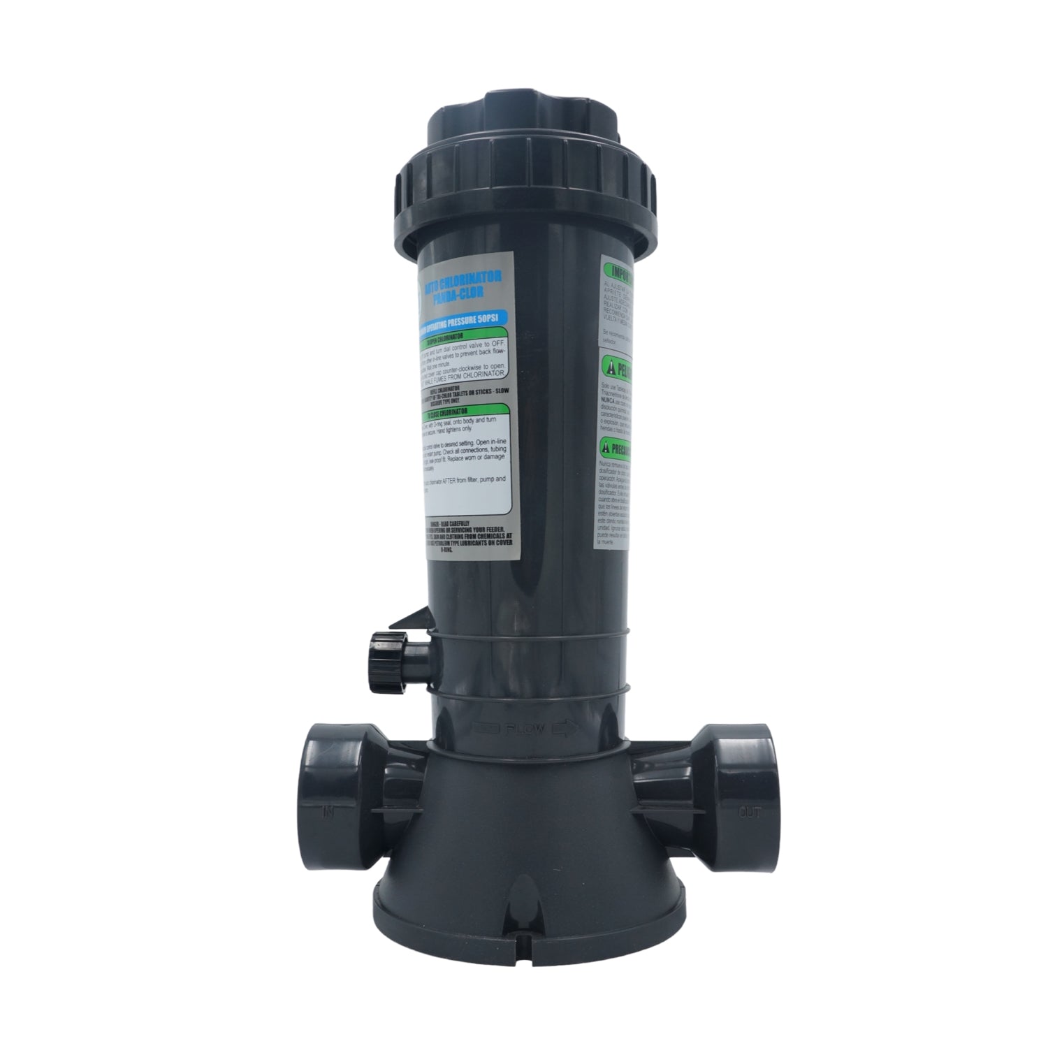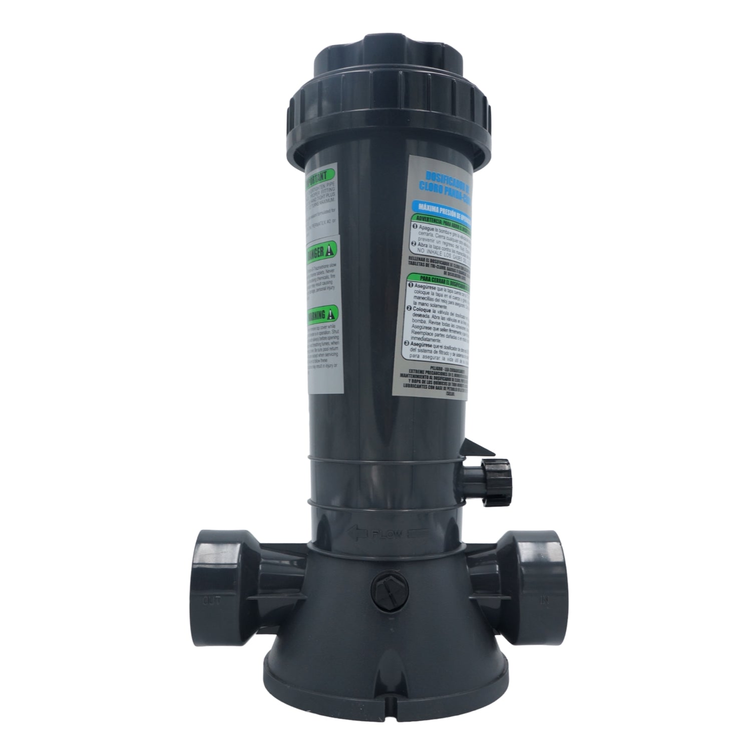 CLORADOR AUTOMÁTICO DE TABLETAS EN LINEA CON CAPACIDAD DE 2 kg (8 PASTILLAS), CON VÁLVULA DE CONTROL PARA UNA PRESIÓN MÁXIMA DE 50 PSI Y CONEXIONES EN 1.5"