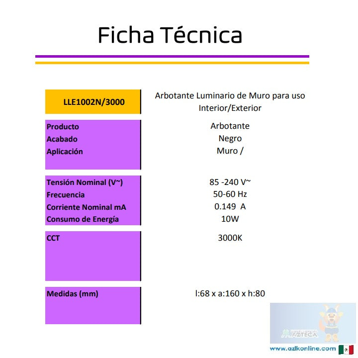 LUMINARIO ARBOTANTE DE MURO PARA INTERIOR Y EXTERIOR LITELUX 10W LLE1002N/3000