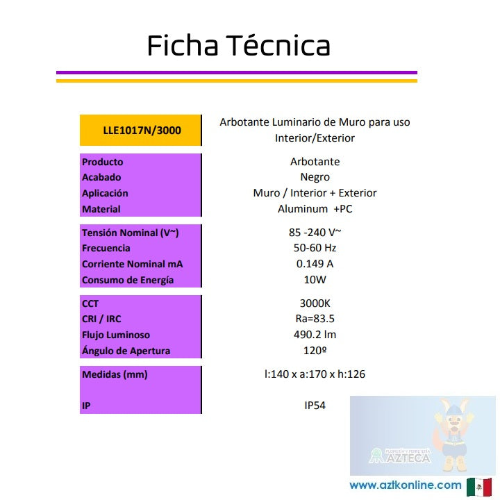LUMINARIO ARBOTANTE DE MURO PARA INTERIOR Y EXTERIOR LITELUX 10W LLE1017N/3000