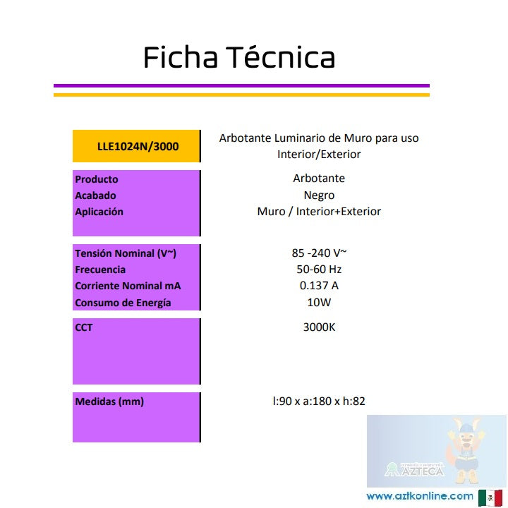 LUMINARIO ARBOTANTE DE MURO PARA INTERIOR Y EXTERIOR LITELUX 10W LLE1024N/3000