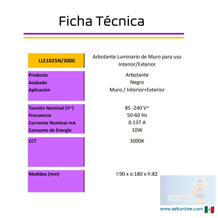LUMINARIO ARBOTANTE DE MURO PARA INTERIOR Y EXTERIOR LITELUX 10W LLE1025N/3000