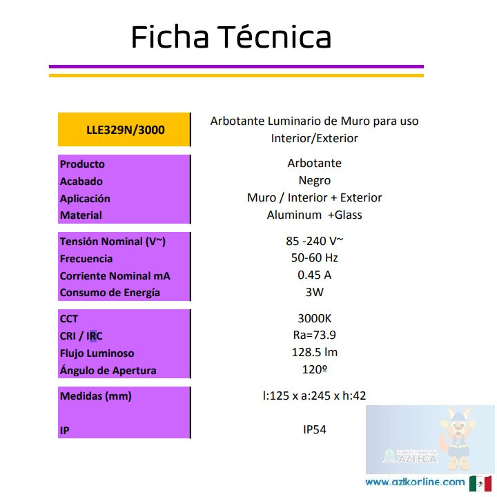 LUMINARIO ARBOTANTE DE MURO PARA INTERIOR Y EXTERIOR LITELUX 3W LLE329N/3000