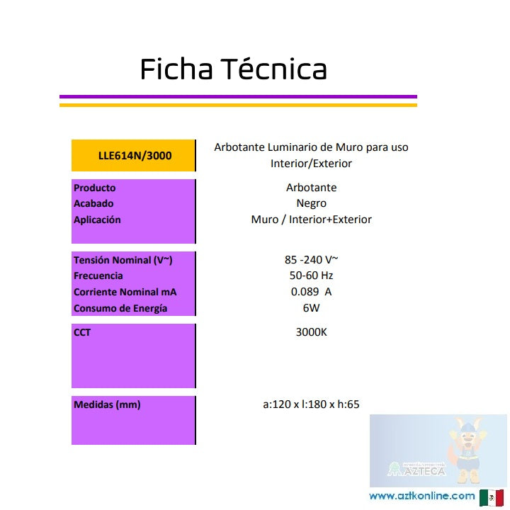 LUMINARIO ARBOTANTE DE MURO PARA INTERIOR Y EXTERIOR LITELUX 6W LLE614N/3000