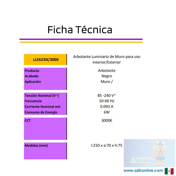 LUMINARIO ARBOTANTE DE MURO PARA INTERIOR Y EXTERIOR LITELUX 6W LLE623N/3000