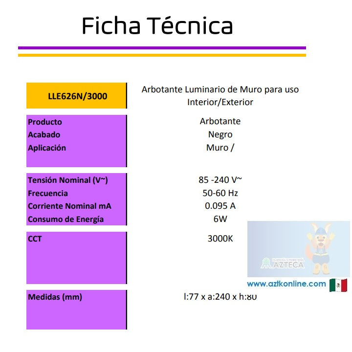 LUMINARIO ARBOTANTE DE MURO PARA INTERIOR Y EXTERIOR LITELUX 6W LLE626N/3000