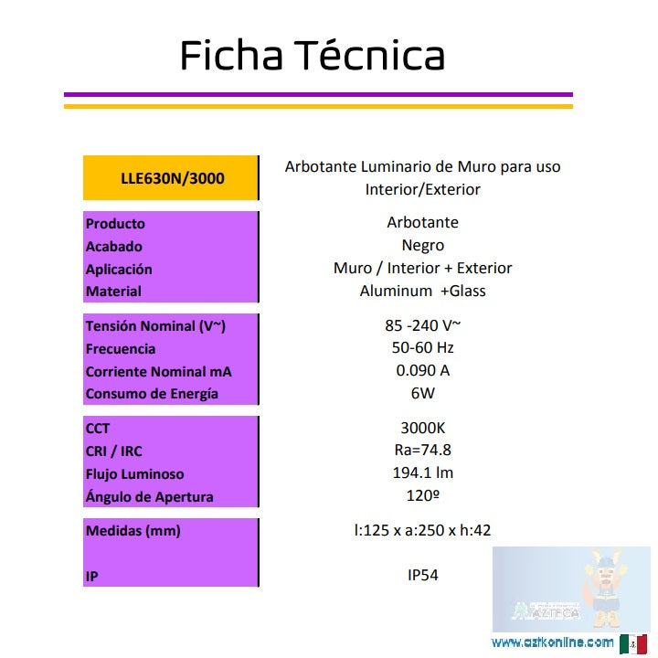 LUMINARIO ARBOTANTE DE MURO PARA INTERIOR Y EXTERIOR LITELUX 6W LLE630N/3000