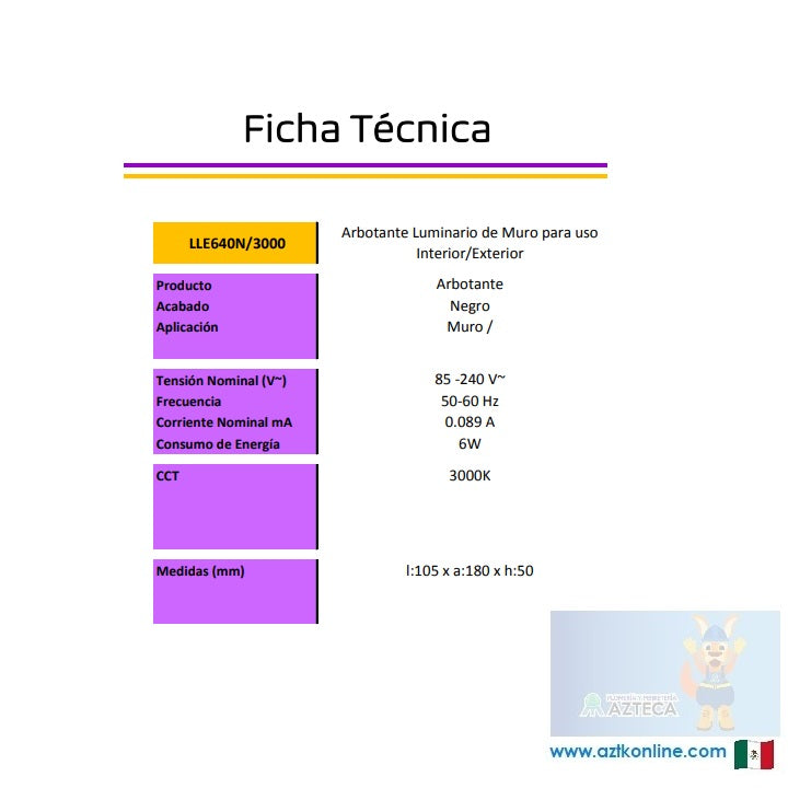 LUMINARIO ARBOTANTE DE MURO PARA INTERIOR Y EXTERIOR LITELUX 6W LLE640N/3000
