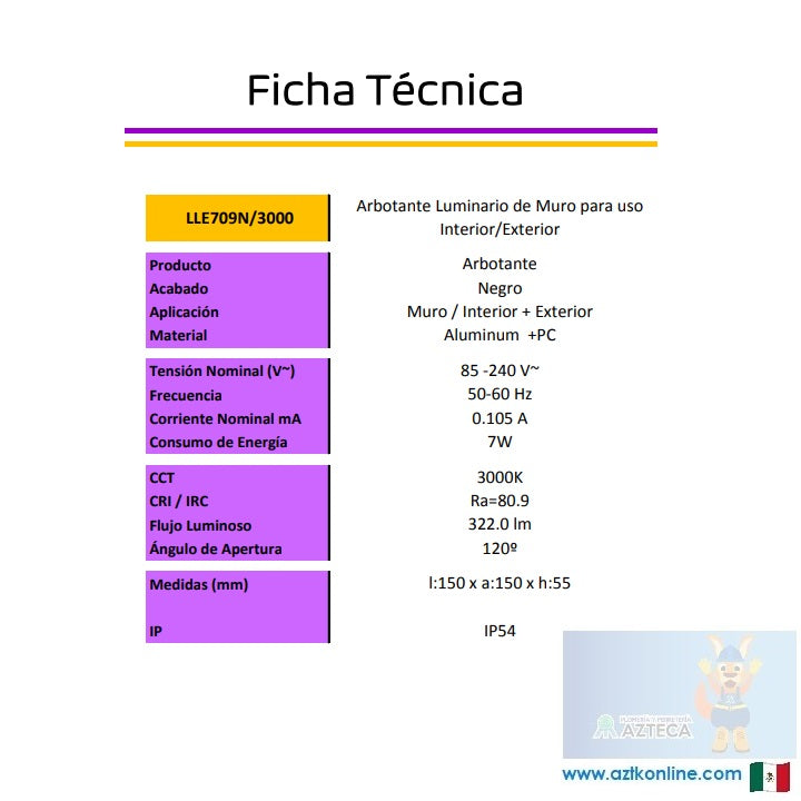 LUMINARIO ARBOTANTE DE MURO PARA INTERIOR Y EXTERIOR LITELUX 7W LLE709N/3000