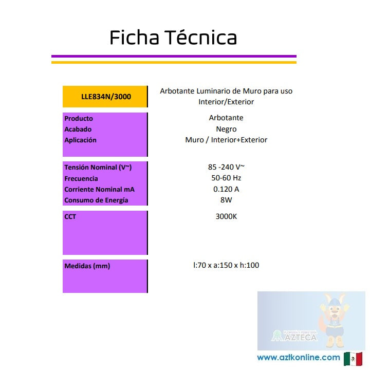 LUMINARIO ARBOTANTE DE MURO PARA INTERIOR Y EXTERIOR LITELUX 8W LLE834N/3000