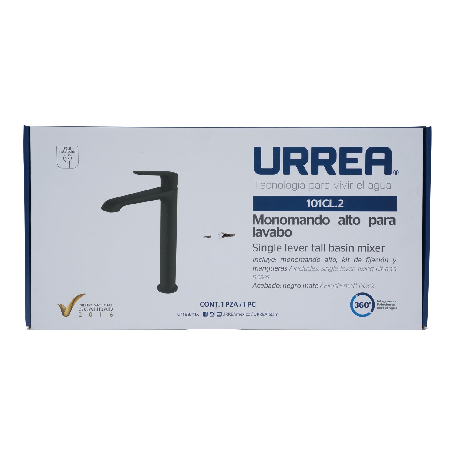 MEZCLADORA MONOMANDO ALTO PARA LAVABO NEGRO MATE UREEA 101CL.2
