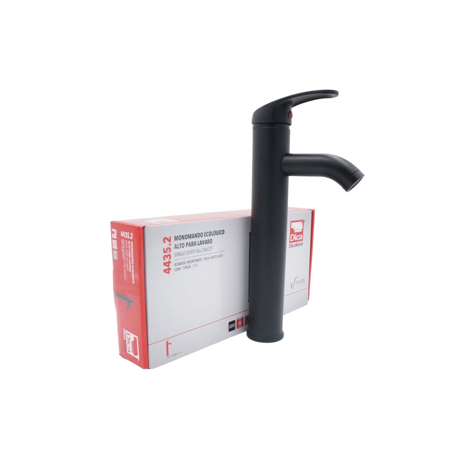 MEZCLADORA MONOMANDO ALTO PARA LAVABO NEGRO MATE DICA 4435.2