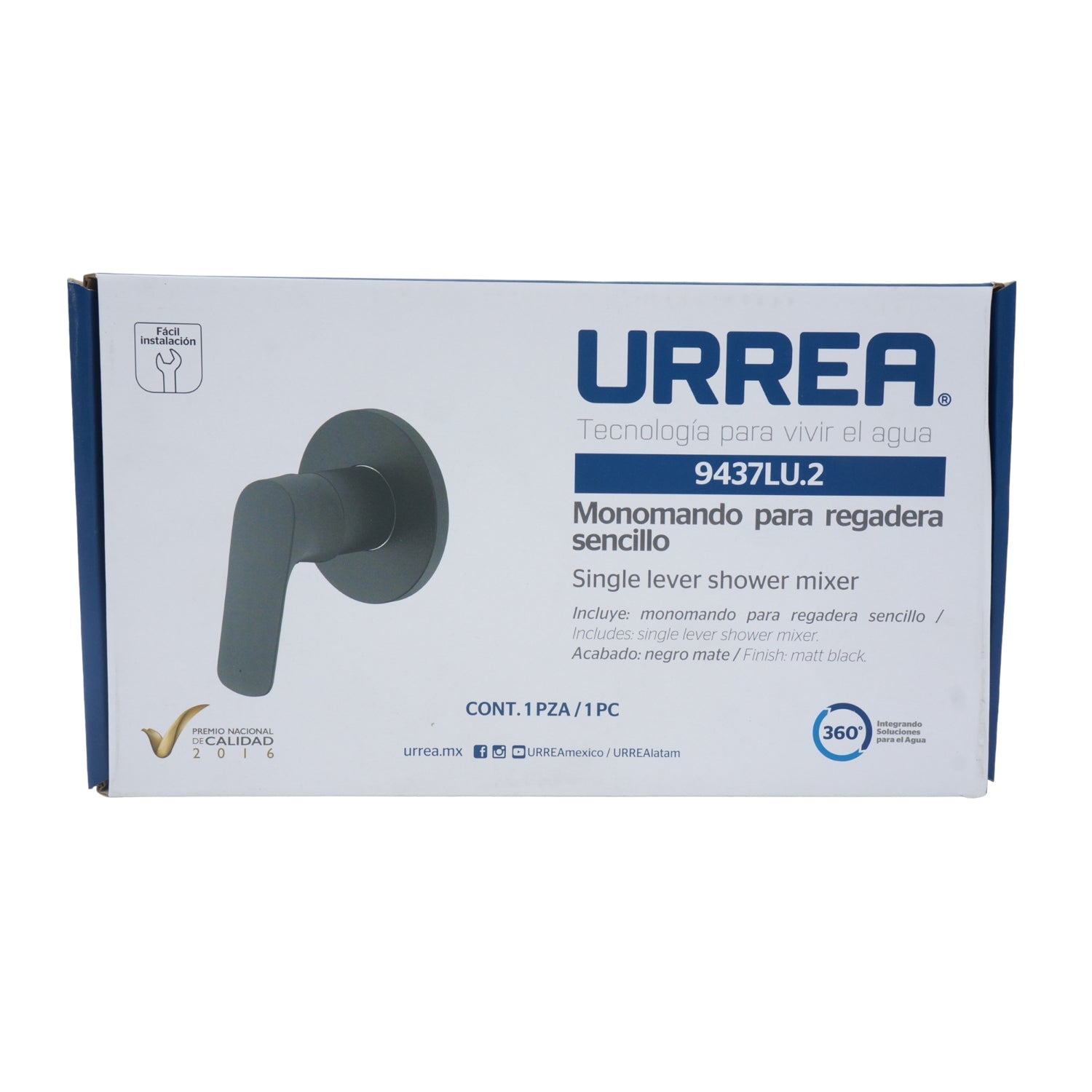 MONOMANDO DE EMPOTRAR PARA REGADERA NEGRO MATE SENCILLO URREA 9437LU.2