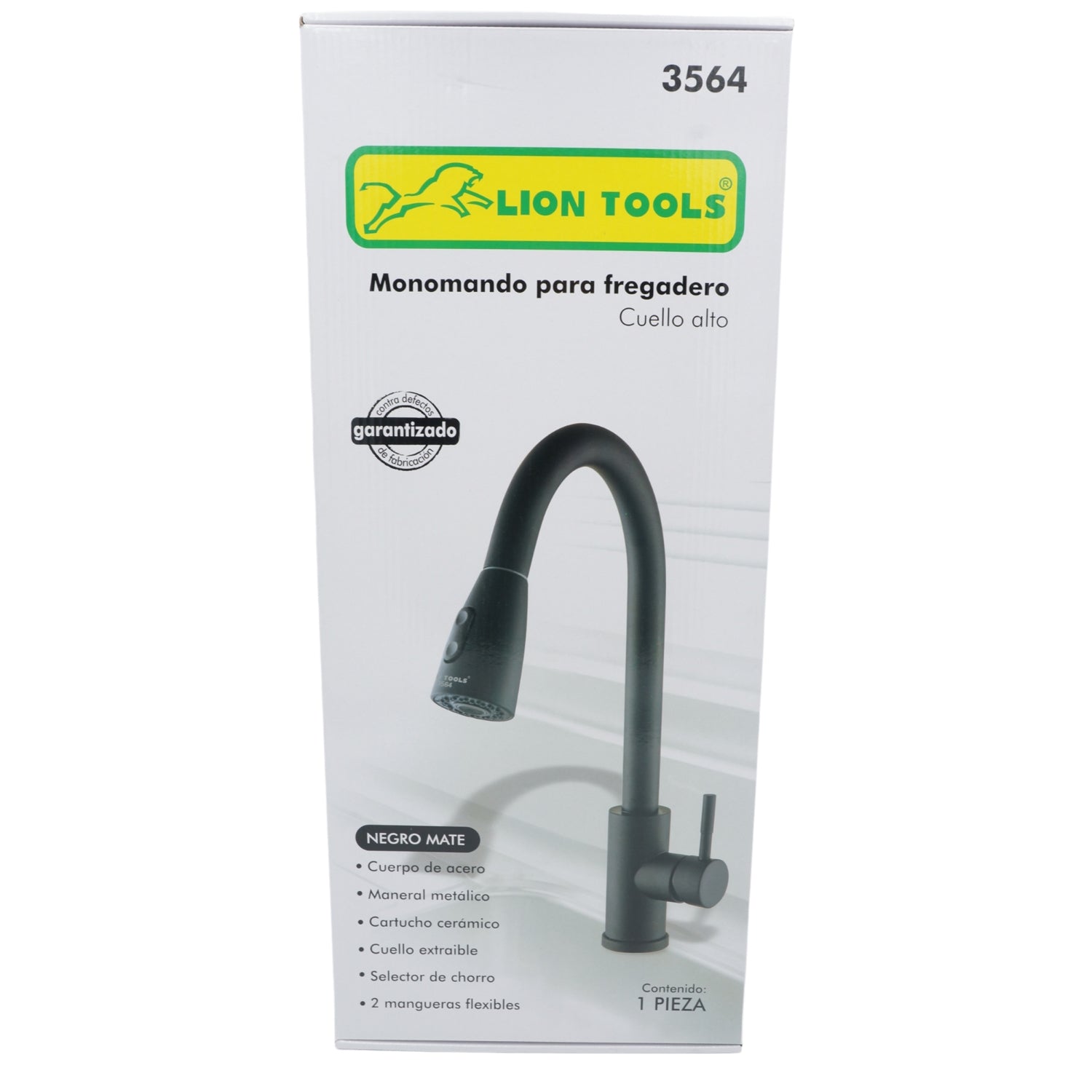 MONOMANDO PARA FREGADERO CUELLO ALTO NEGRO MATE LION TOOLS 3564